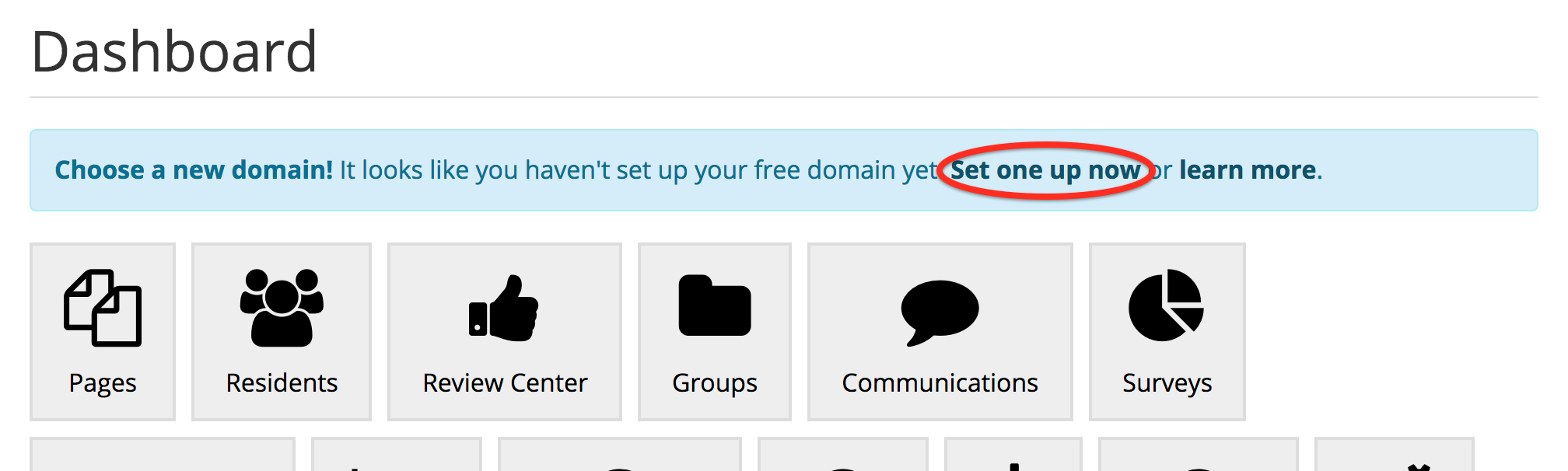 - Click on the “Set one up now!” link from the message at the top of the dashboard.