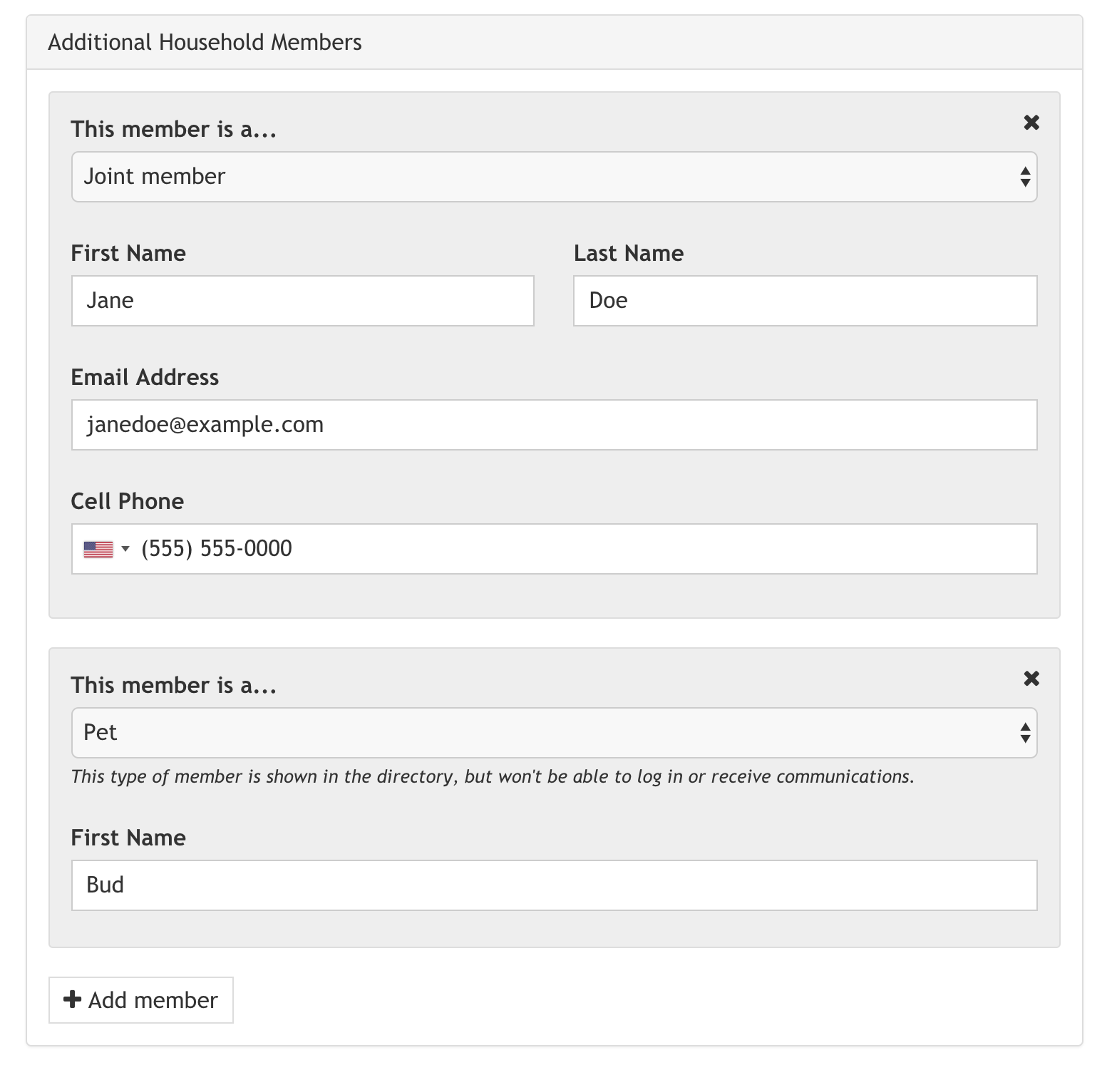 With the current setup, when registering, only two people can be listed on an account. However, with HOA Express 3.0, users will be able to add as many members to their account as they’d like when registering! This includes joint members and specially-designated members (e.g. pets, children, relatives).