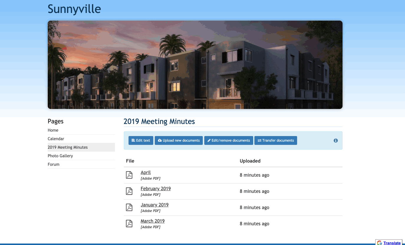 Most communities have a variety of documents to keep up with from bylaws and regulations to financials, meeting minutes, and more. As these documents accumulate over time, it can be overwhelming if they’re not all stored in one place, are not well organized, or are difficult to access. To avoid this potential overwhelm, we recommend using the “Documents” page type to upload these files to your website!