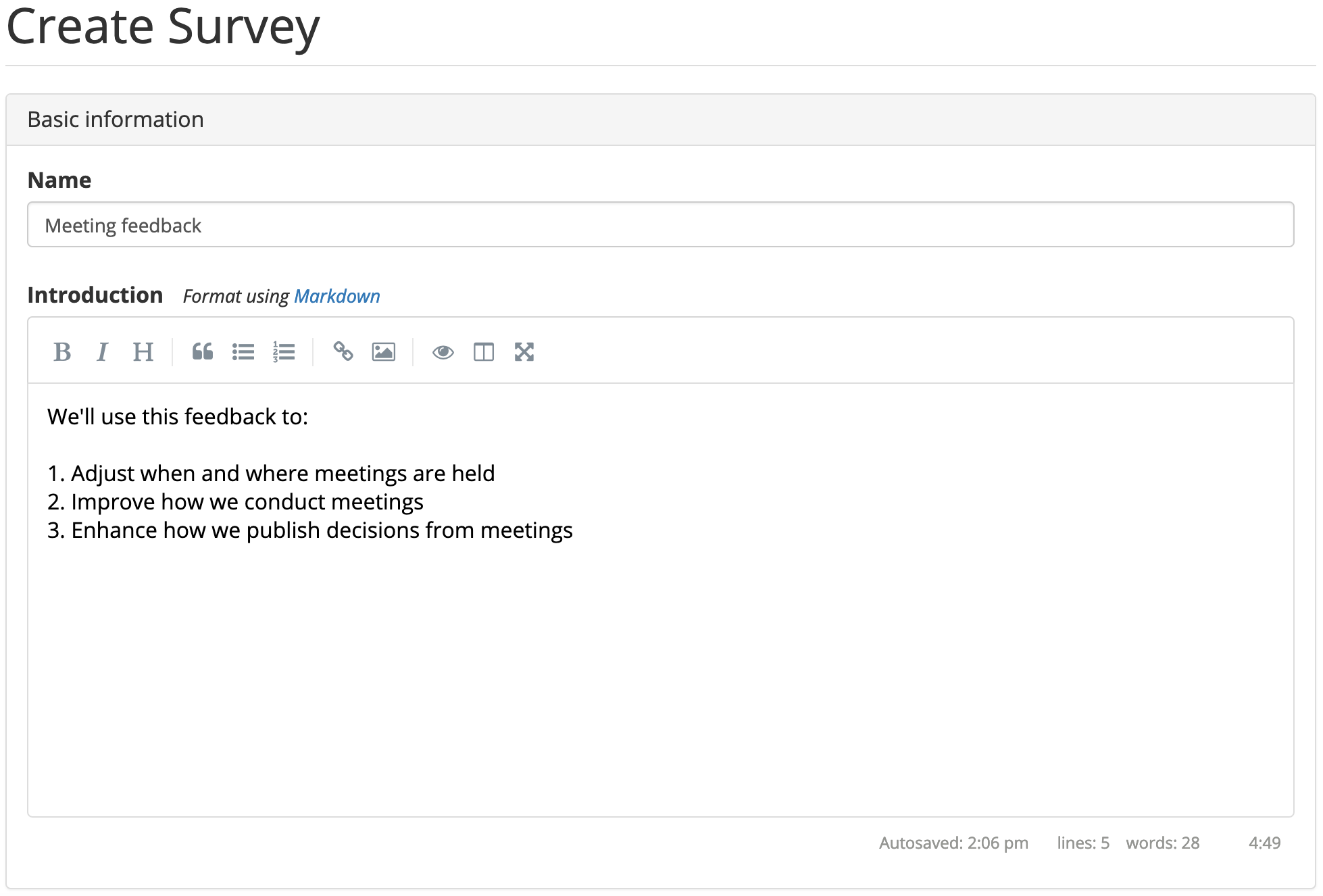 Speaking of survey introductions, this is another new feature we just released. The introduction field is useful for describing the survey's purpose, providing more detailed instructions, and more. And now with the ability to edit surveys, you can easily add introductions to surveys you've already created.