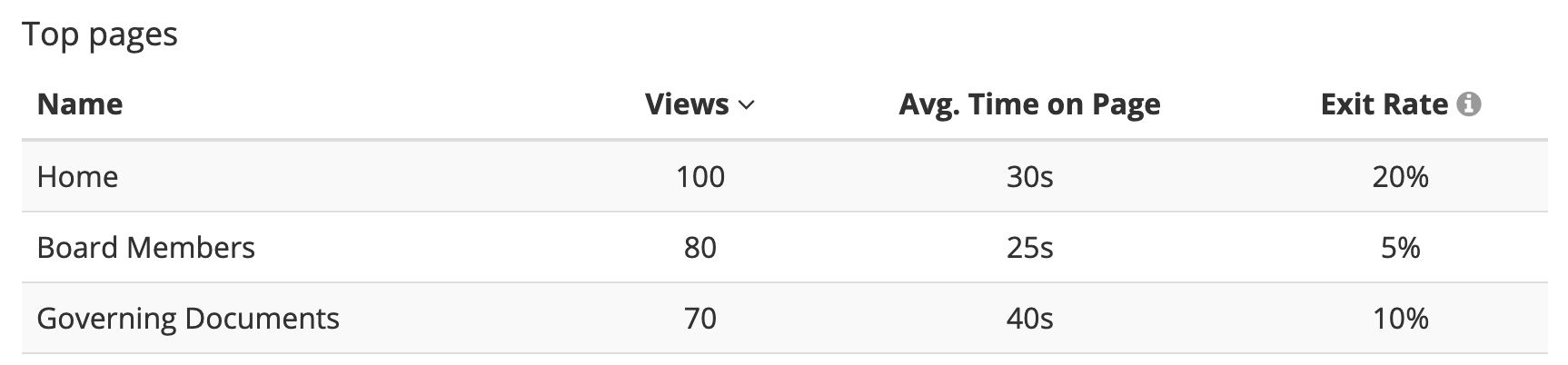 The "top pages" table in the analytics section has been improved in a number of ways. It uses much clearer page names, changes with the time period selection, and is more logically organized on the page.