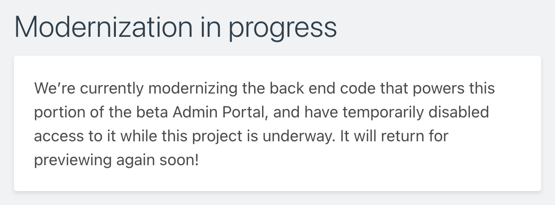 Back end modernization is still ongoing, but expect to see the members and surveys sections completed next, with the settings section to follow.