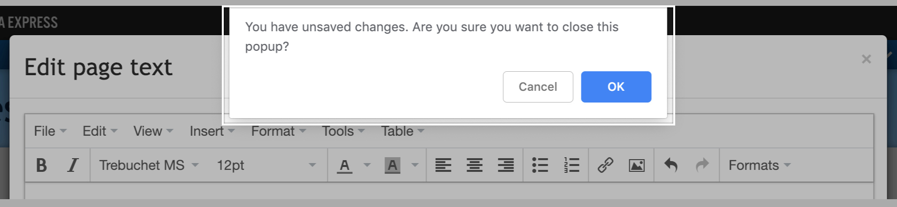 Losing your work is never a pleasant experience. To help prevent that situation while editing a page's text, you'll now be asked whether you really intend to close the editor if you have any unsaved changes.