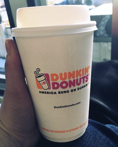 Anything from Dunkin’ Donuts! It reminds me of Massachusetts.