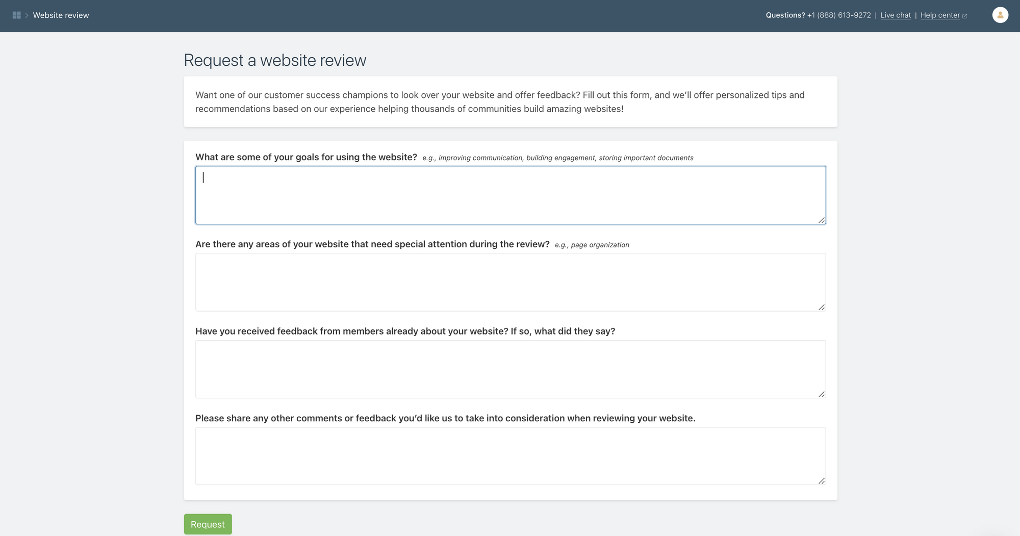 If you're a community with an active subscription to our deluxe plan, you have the option to schedule a free website review with our customer success team. With this service, one of our customer success champions will review your website and offer personalized recommendations based on your goals and our team's experience helping thousands of communities build amazing websites!