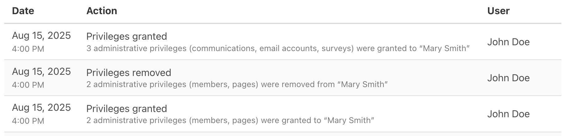 For better historical record-keeping, activities in the activity log related to changes in administrative privileges are now much more detailed! The activities will specify the exact privileges that were gained or lost as part of the change. A nice benefit if you need to look back and better understand changes over time.